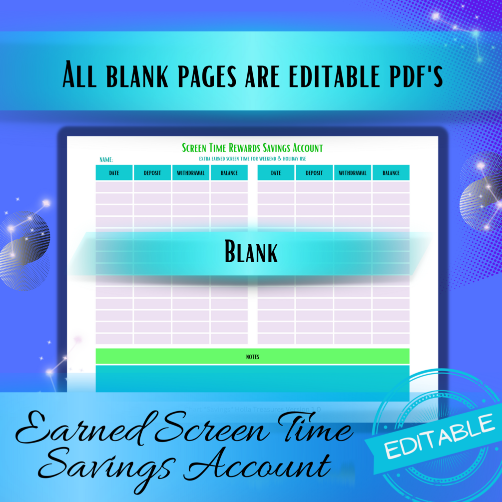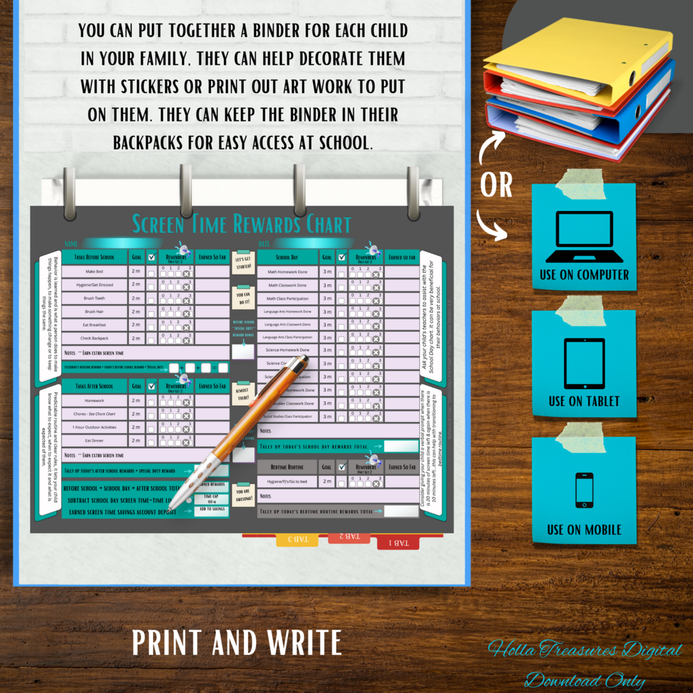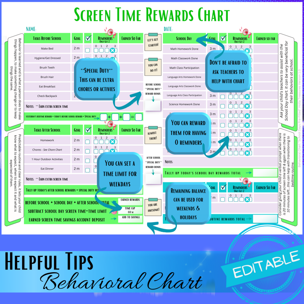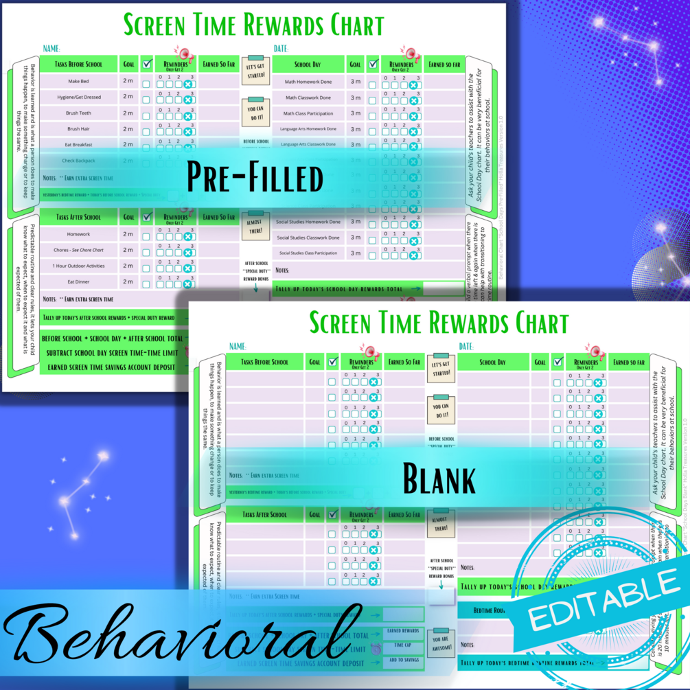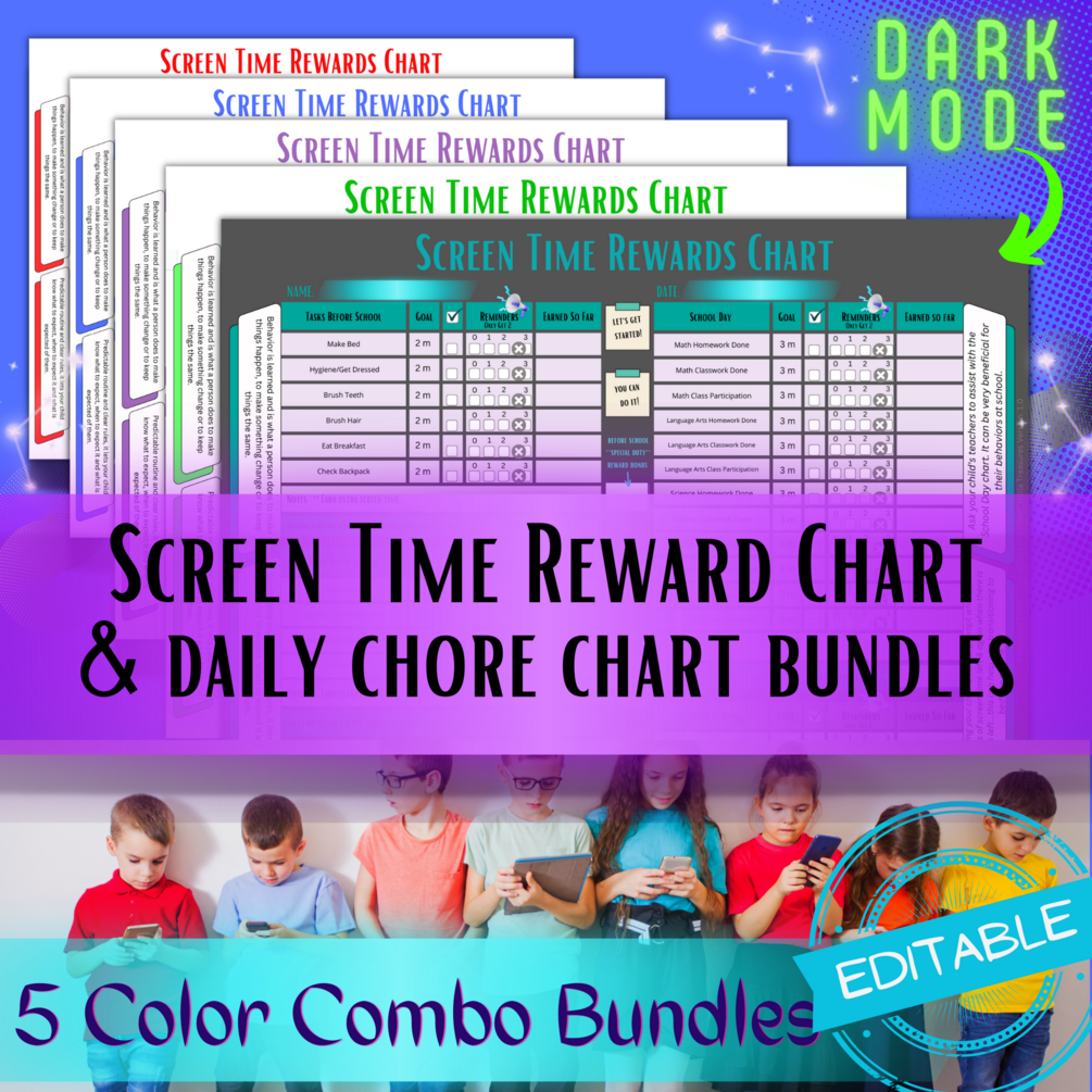 Editable Screen Time Reward Chart, Behavior Chart